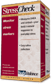 StressCheck Home Testing Hormone Kit measures DHEA and Cortisol, your body's natural response to everyday stress StressCheck Home Test Kit is a safe, easy-to-use, and reliable screen that uses a small saliva sample to measure your levels of DHEA and cortisol--hormones vital to your body's response to stress. This noninvasive and inexpensive screen provides the accuracy of a laboratory analysis without you having to leave the comfort of your own home. Stress is good for you. It's true. Stress is often thought of in a negative light--and with good reason. However, stress, both physical and emotional, also helps your body stay active and alert, more prepared for obstacles it may face. Two hormones, DHEA (dehydroepiandrosterone) and cortisol, are your body's main forces for coping with stress. The balance of these hormones can affect how you handle the overwhelming feeling that stress can bring. That's where StressCheck Hormone Test Kits come in. StressCheck Hormone Testing Kit by BodyBalance measures your DHEA and cortisol levels to determine their balance. Classified as adrenal or "stress" hormones--DHEA and cortisol serve as markers of stress response, regulating how your body reacts during stress. Each hormone is released into your bloodstream from your adrenal glands when your body feels stress and helps your body make the necessary adjustments to protect itself. These two hormones help balance each other to ensure a stress response. DHEA is anabolic, a constructive hormone that affects the immune system, blood pressure, and sleep, among its many functions. Cortisol is a catabolic hormone, a hormone that also affects the immune system, blood pressure, and sleep. When your body feels stress, cortisol is essential. Cortisol maintains and raises your energy levels to assist your body during that stressful period. Together, these two hormones work to provide your body with an optimal stress response. We also suggest these products: |